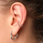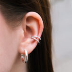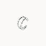Strieborný,rhodiovaný earcuff TWICE je dokonalou voľbou pre každú ženu, ktorá chce zvýrazniť svoje ucho štýlovou náušnicou bez nutnosti prepichnutia ucha. Earcuff sa jednoducho umiestni na požadovanú časť ucha a v prípade potreby, jemným pritlačením zafixuje. Earcuff TWICE je tvorený dvojradom zirkónov, ktoré mu dodávajú na elegancii a luxuse. Odporúčame umiestniť na strednú časť ucha.