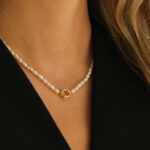 V prednej časti je zdobený strieborným, 18k pozláteným krúžkom. Riečne perly majú v náhrdelníku LOIRA pozdĺžny tvar. Je možné ho nosiť samostatne alebo naňho pridať niektorý z našich príveskov, taktiež môžete náhrdelník otočik krúžkom dozadu, vďaka čomu budete mať z neho základný perlový náhrdelník (bez krúžku v prednej časti) pre príležitosti, ktoré si žiadajú viac jednoduchosti. Upozorňujeme, že perličky nemusia byť dokonale pravidelného tvaru a vzájomne rovnaké, nakoľko ide o prírodný produkt a každá perla je jedinečná.