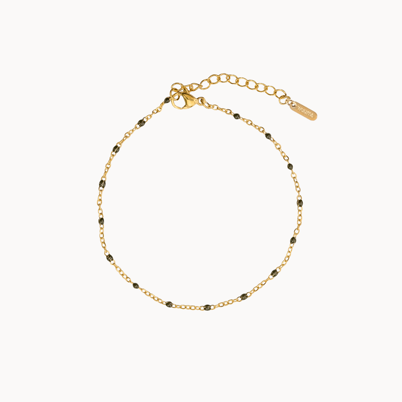 Náramok BLACKIE je vyrobený z hypoalergénnej chirurgickej ocele, pozlátený 14k zlatom. Tvorí ho jemná zlatá retiazka doplnená o čierne kamienky po celom obvode. Je to jemný kúsok, ktorý je krásny samostatne ale taktiež sa ľahko kombinuje aj k našim ostatným náramkom. Navyše je náramok BLACKIE z našej kolekcie vodeodolných šperkov, vďaka čomu je odolnejší voči vonkajším vplyvom, nepodlieha ľahko korózií ani oxidácií a vy sa tak s ním môžete aj sprchovať či kúpať v sladkej vode, bez toho aby ste sa museli báť, že sa vám poškodí. Viac o rozdieloch medzi striebornými šperkami a šperkami vyrobenými z chirurgickej ocele v našom online magazíne.
