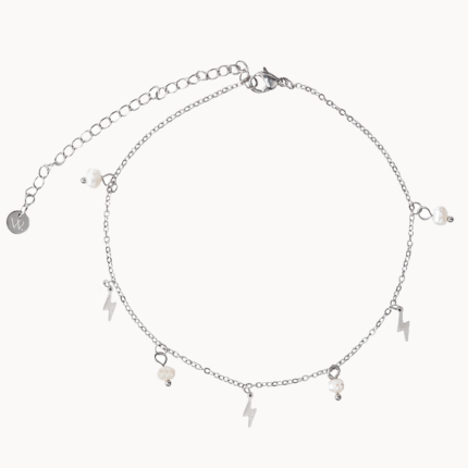 Náramok na nohu LUMI je vyrobený z hypoalergénnej, chirurgickej ocele striebornej farby. Tvorí ho jemná retiazka, prívesky v tvare blesku a prívesky z riečnych perál. Je to jemný, no zároveň krásny detail, ktorý dokonale doladí každý letný outfit. Patrí do našej kolekcie „Vodeodolných šperkov“, čo znamená, že ho môžete bez obáv nosiť každý deň, môžete sa s ním kúpať, sprchovať či vykonávať vašu obľúbenú aktivitu bez toho aby ste ho museli dávať dole. Stačí si ho dať na nohu na začiatku leta – a nemusíte ho dávať dole až do jeho konca. Zostane krásny, žiarivý a stále rovnako štýlový.