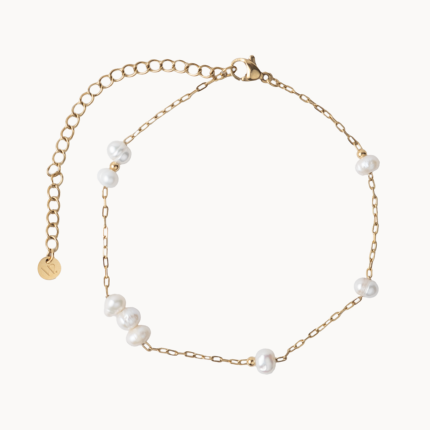 Náramok na nohu SOLEA je vyrobený z hypoalergénnej, chirurgickej ocele, pozlátený 14k zlatom. Tvorí ho jemná retiazka, malé guličky a riečne perly. Je to jemný, no zároveň krásny detail, ktorý dokonale doladí každý letný outfit. Patrí do našej kolekcie „Vodeodolných šperkov“, čo znamená, že ho môžete bez obáv nosiť každý deň, môžete sa s ním kúpať, sprchovať či vykonávať vašu obľúbenú aktivitu bez toho aby ste ho museli dávať dole. Stačí si ho dať na nohu na začiatku leta – a nemusíte ho dávať dole až do jeho konca. Zostane krásny, žiarivý a stále rovnako štýlový.
