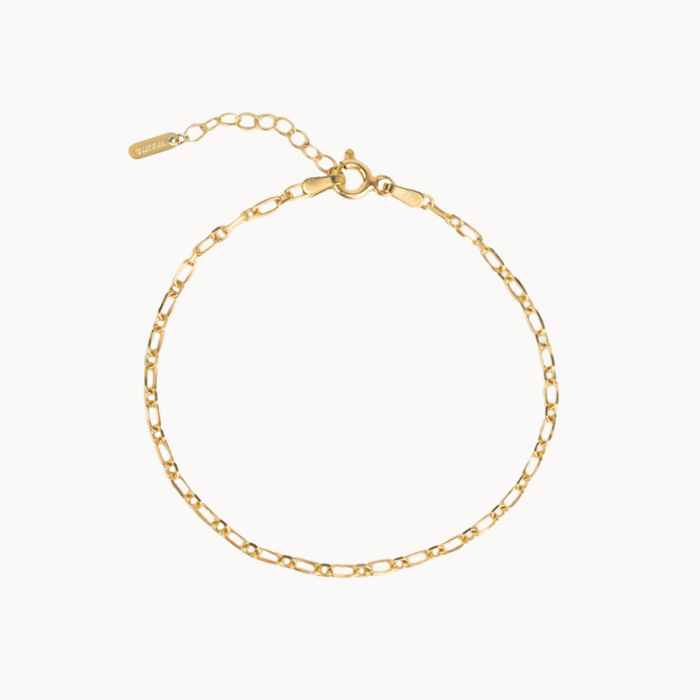 Náramok PONYTA je vyrobený zo striebra, pozlátený 18k zlatom. Je tvorený retiazkou s malými očkami. Je to ideálny, minimalistický kúsok, vhodný do kombinácií ale aj samostatne.