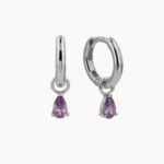 Strieborné, rhodiované, kruhové náušnice AMAZON sú doplnené o jemný fialový kamienok v spodnej časti. Je to náušnica, ktorá sa hodí ako na prvú tak aj na druhú či tretiu dierku do kombinácie.