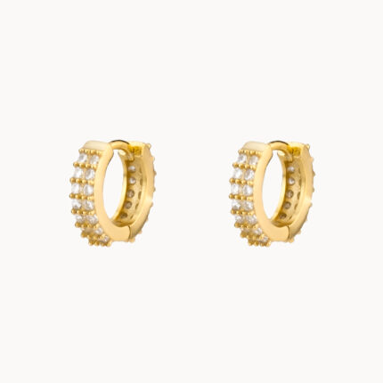 Strieborné, 18k zlatom pozlátené náušnice MIA sú zdobené bielymi zirkónmi po celom svojom obvode. Tie im dodávajú unikátny a moderný vzhľad. Perfektne sa hodia ako na prvú, tak aj na druhú dierku.