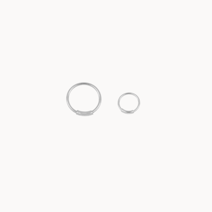 Strieborná, rhodiovaná základná piercing náušnica CIRCLE, s priemerom 8mm/10mm je vašou žiadanou voľbou. Krúžok CIRCLE je ideálny najmä ako Helix náušnica. Náušnica sa uzatvára zasunutím jednej časti do druhej časti náušnice.