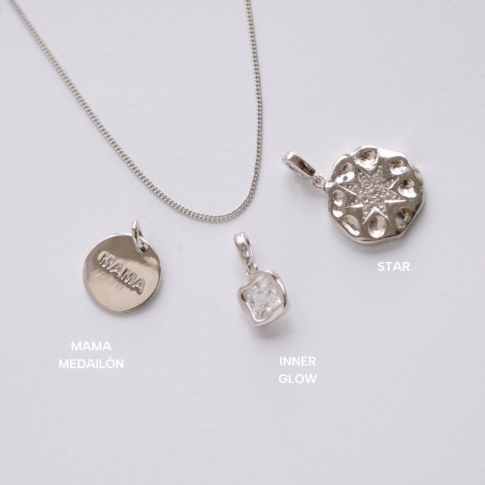 Strieborný prívesok MAMA- medailón, vyrobený z rhodiovaného striebra, budete hrdo nosiť na každej retiazke. Medailón má priemer 12 mm. Na základné retiazky UNION, ZOE či GRUMETTA ho viete jednoducho navliecť. V prípade, že si ho viete predstaviť na náhrdelníku PERLA, PERLA MAXI či inom väčšom náhrdelníku, viete na to využiť otváracie očko, ktoré sa jednoducho otvorí a následne uzavrie pomocou kliešťov – zasielame spolu s príveskom. Vďaka nemu si prívesok môžete ľahko pripevniť na akúkoľvek retiazku a prispôsobiť ju svojmu štýlu.