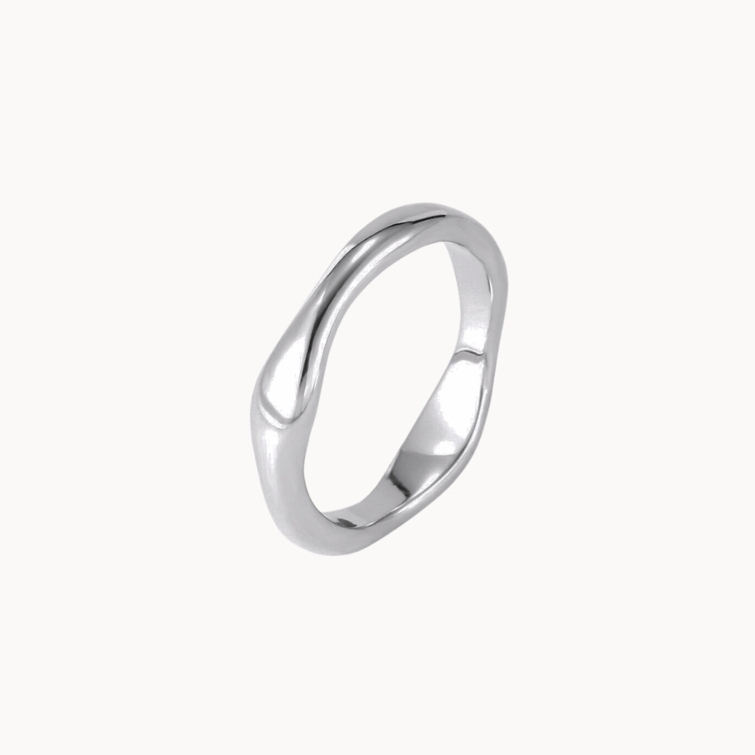 Strieborný prsteň FLOW 4 mm, vyrobený z hypoalergénnej, chirurgickej ocele striebornej farby, si vás získa svojím jedinečným organickým tvarom. Je to jednoduchý kúsok s hrúbkou 4 mm na každý deň, ktorý skvelo vyzerá sám, ale aj v kombinácií s inými prsteňmi. Je z našej kolekcie vodeodolných šperkov, vďaka čomu je odolnejší voči vonkajším vplyvom.